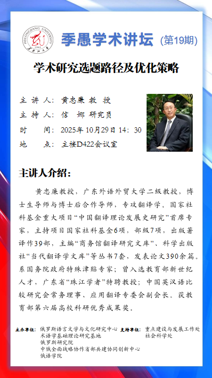 俄罗斯语言文学与文化研究中心||季愚学术讲坛(第19期)