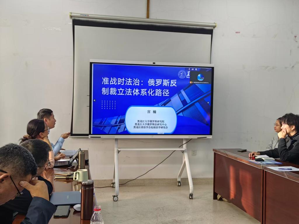 4.中心宫楠副教授作了题为《准战时立法:俄罗斯反制裁立法的体系化路径》。发言聚焦俄罗斯准战时反制裁立法的体系化构建,梳理其立法演进脉络,详解五级规范体系,阐释制度逻辑与运行机制,剖析重点经济领域规范群特点,提炼出体系化与应急性适配的核心启示,为应对单边制裁提供制度参考。