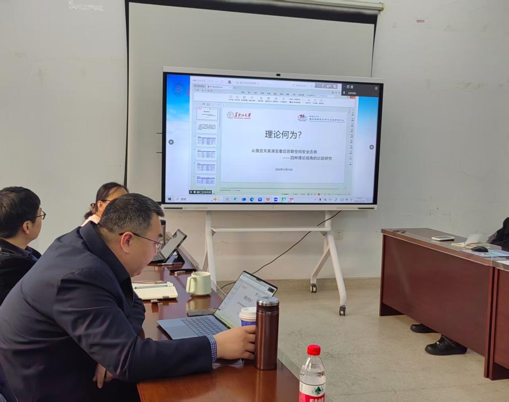 2. 中心滕仁研究员作了题为《理论何为?从俄亚关系演变看后苏联空间安全态势 ——四种理论视角的比较研究》以俄亚关系演变为切入点,探究后苏联空间安全态势的发展脉络。发言引入现实主义、自由主义、建构主义及第四范式四种理论视角,通过多维度比较分析,揭示不同理论框架下俄亚互动对区域安全格局的影响机制,展现后苏联空间安全态势的复杂性与多元性,为该领域研究提供了跨理论的分析范式与思考路径。