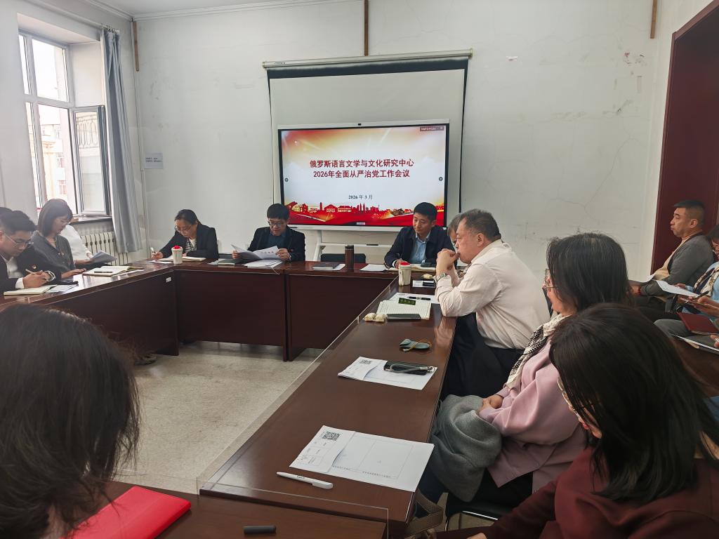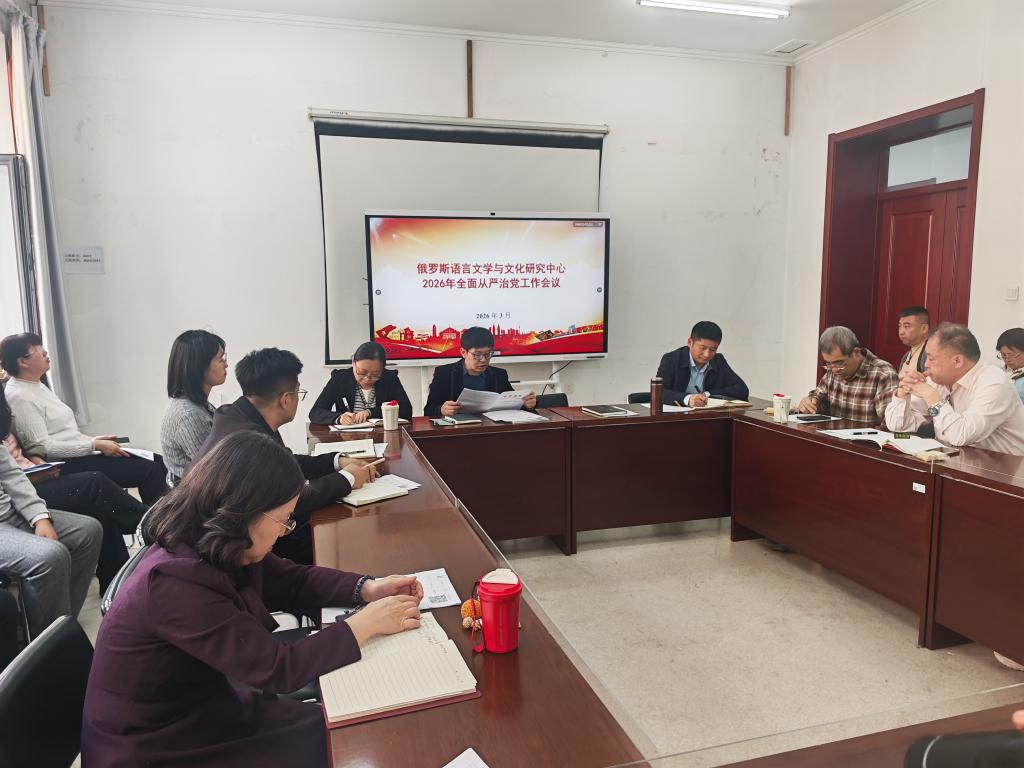 结合中心实际,叶其松就做好2026年全面从严治党工作提出三点要求:一是坚守立德树人根本任务,牢记为党育人、为国育才使命,将思想政治教育融入各项工作全过程,强化教职工思想引领,引导教师立足俄语研究和人才培养岗位落实育人职责。二是深化师德师风建设,严格落实相关制度规定,常态化开展警示教育,引导教职工践行职业行为准则,坚决杜绝师德失范行为,营造廉洁从教良好氛围,打造高素质专业化教师队伍。三是严守廉洁自律底线,强化全体教职工纪律规矩意识,常态化开展廉洁教育,紧盯科研经费等重点领域关键环节,领导干部带头履职尽责、严格落实“一岗双责”,构建风清气正的育人环境。